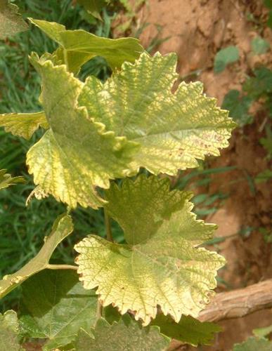 An actual lack of Fe is rare because most soils contain enough Fe to meet the requirements of grapevines. However, the low availability of Fe creates deficiencies (lime-induced chlorosis).