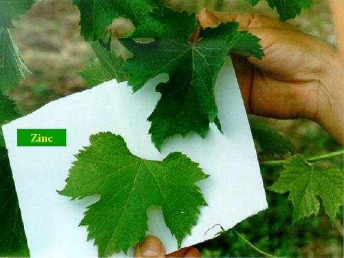 Symptoms of zinc deficiency increase from older leaves to shoot tip.