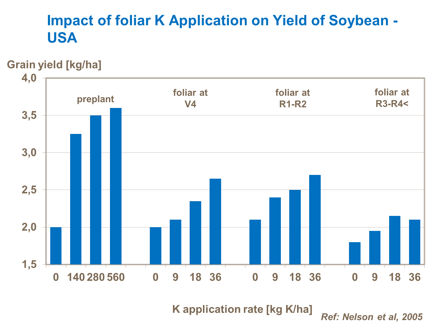 The same goes for pods per node. Therefore the aim must be to develop as many reproductive nodes per plant prior to flowering (before stage R1). Factors that influence in the development of a good canopy prior to stage R1 will all contribute to achieve the production goals.